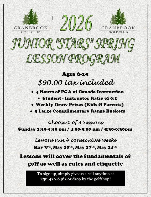 Please stop by the Pro Shop or Contact us to pick up a lesson brochure. Programs are available for golfers of all levels.
